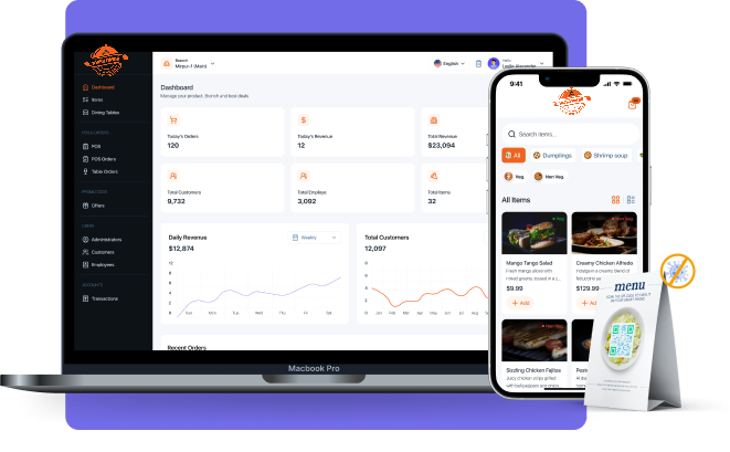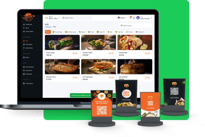 - Menü öğeleri, açıklamalar, fiyatlar ve isteğe bağlı görseller sisteme eklenebilir.